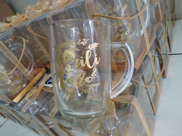 Buat anda yang suka souvenir gelas, disarankan untuk memesan jauh - jauh hari, kira - kira 1 bulan sebelum acara.